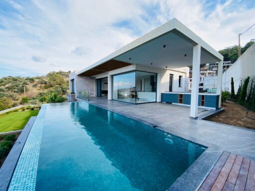 Villalarımıza ait özel 30m2 sonsuzluk havuzu, geniş teras alanı ve bahçe, dış mutfak, opsiyonel ateş çukuru bulunmaktadır.
