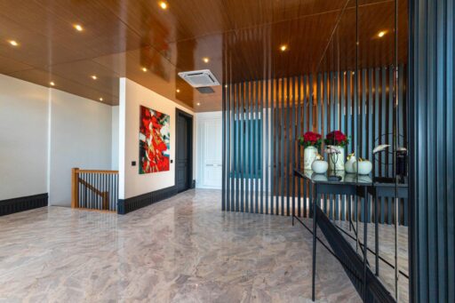Malikanemiz üç katlı olup bodrum katta kapalı garaj, müştemilat, çamaşır odası, 2 adet akvaryuma bakan yatak odası ve sinema TV Odası bulunmaktadır.