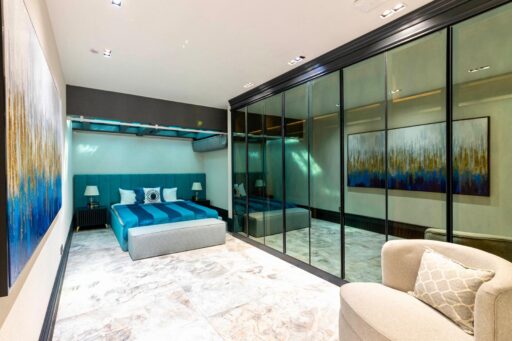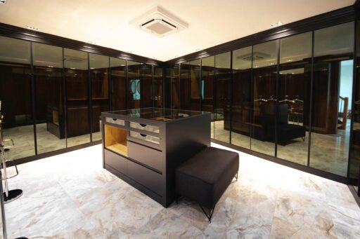Giyinme odasının tüm dolapları yapılmıştır.