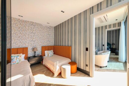 Çocuk yatak odası ve ebeveyn yatak odası dublekstir, alt katlarında banyo ve giyinme odası üst katlarında yatak odası bulunmaktadır. Odaların kendilerine ait banyo-wc ve seyir bahçesi vardır.