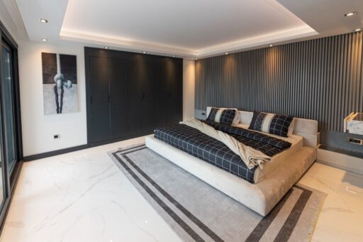 Tüm odalar gömme dolap giyinme odalı, makyaj masalı, iç duvar giydirmelidir. (yatağı, bazası, başlığı görsellerle birebirdir)